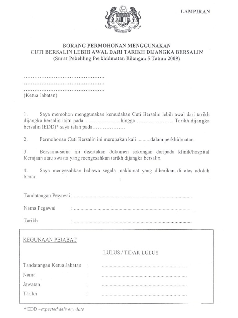 Moshims borang permohonan cuti tanpa rekod menunaikan ibadah umrah borang cuti tanpa rekod isteri bersalin kpm. Kes pecat pekerja wanita cuti bersalin jabatan perkhidmatan awam facebook. Maklumat hendaklah dilengkapkan dengan jelas dan menggunakan huruf besar. Butiran permohonan kemudahan cuti bersalin 8. Pekeliling cuti bersalin tahun 2017.