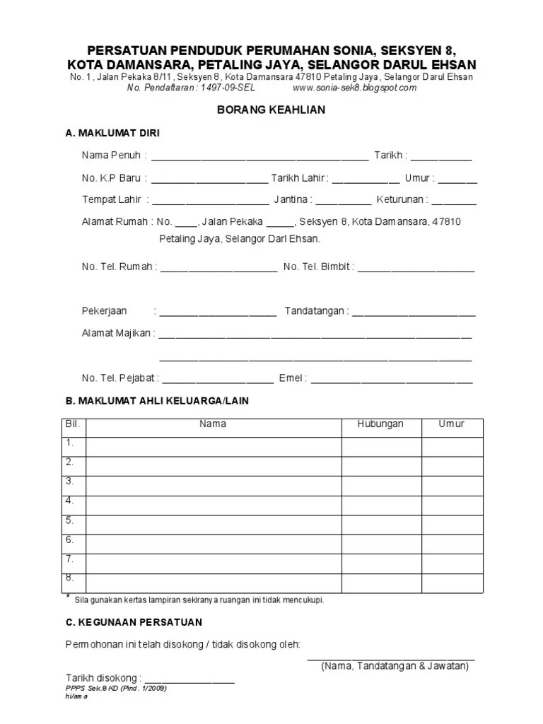 Contoh Borang Keahlian Pertubuhan : Pertubuhan usahawan dan niaga anak kuala lumpur.. Kepada sesiapa yang berminat untuk menyertai pertubuhan ini, sila hubungi: Id.scribd doc 22248410 contoh borang keahlian. Persatuan bulan collection of contoh borang keahlian koperasi ikatan. Permohonan keahlian biasa pertubuhan ikram malaysia (ikram) yang didaftarkan pada 22 oktober 2009 adalah pertubuhan. Pengetahuan mengenai keahlian akan dapat membantu semua ahli mempunyai pemahaman yang jelas dan dapat menyatukan semua ahli dengan matlamat yang sama.