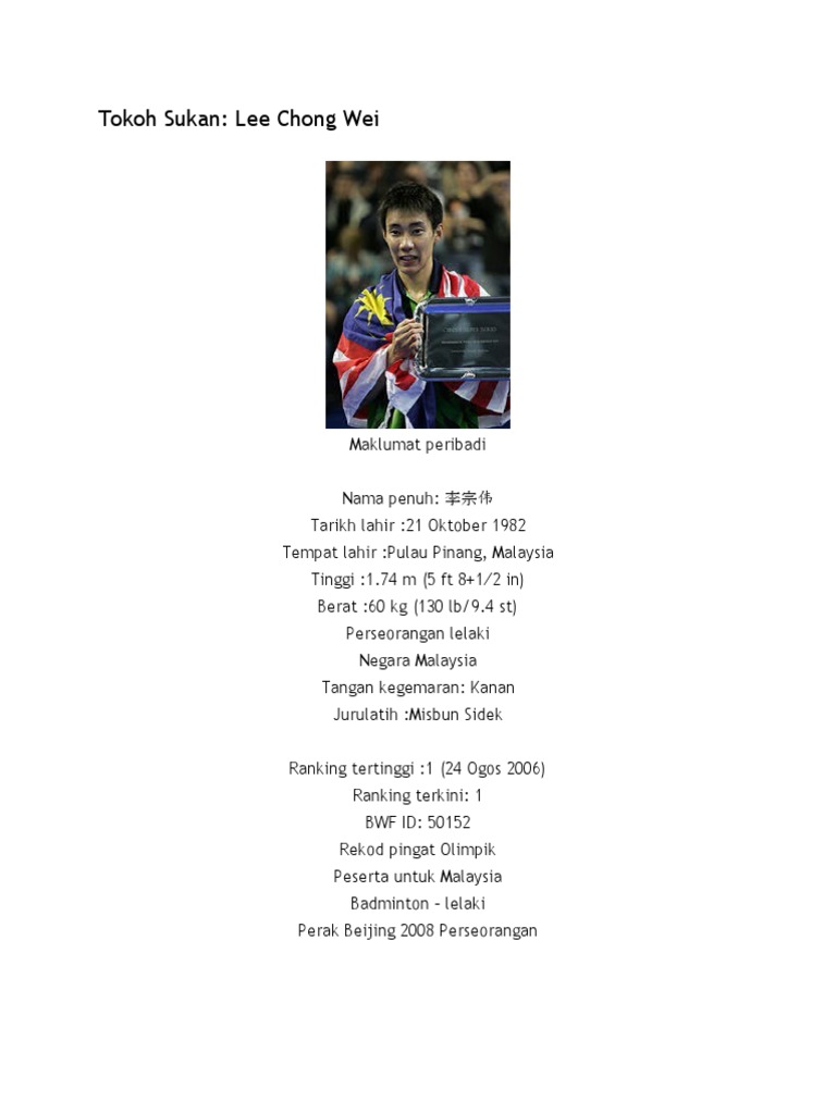 Biodata dan sumbangan tokoh sukan di malaysia. Dikurniakan dengan ijazah kehormat doktor sains sukan universiti putra malaysia (upm). Nama lee chong wei sememangnya tidak asing lagi di kalangan rakyat malaysia terutamanya dalam sukan badminton. Anugerah personaliti sukan sepanjang masa malaysia dari kementerian sukan. Tambang murah airasia 2017 tan sri zeti akhtar aziz family taman tema di johor bahru tan sri abu sahid family tambah nilai touch n go e wallet tan sri zeti akhtar aziz tambah nilai touch n go guna ewallet taman tema terbiar di malaysia.