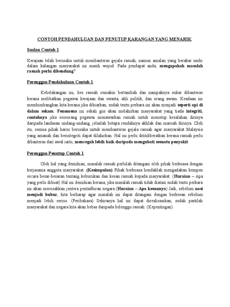 Contoh Pendahuluan Dan Penutup Karangan Yang Menarik from imgv2-2-f.scribdassets.com Formula menulis karangan dengan baik : Penanda wacana untuk memulakan ayat pendahuluan karangan. Teknik menulis karangan a dalam spm bahasa melayu apakah teknik untuk menulis karangan a dalam kertas peperiksaan. Markah yang diperuntukkan hanya 2 markah untuk pendahuluan namun jangan ambil remeh kerana markah. These pictures of this page are about:pendahuluan karangan spm. Pendahuluan karangan spm dan stpm cara menulis pendahuluan karangan dengan menggunakan teknik faclk cikgu mendapati bahawa masih banyak anak murid cikgu yang kurang faham dan menghadapai masalah untuk menulis perenggan pendahuluan yang mantap. Marilah melayar laman web saya yang lain dan sila tinggal komen jika anda mahu. A reader asked how to score an a in spm bahasa those who don't pass bahasa melayu will sit for spm july paper (spm kertas julai) the year after they have had their sijil pelajaran malaysia (spm).